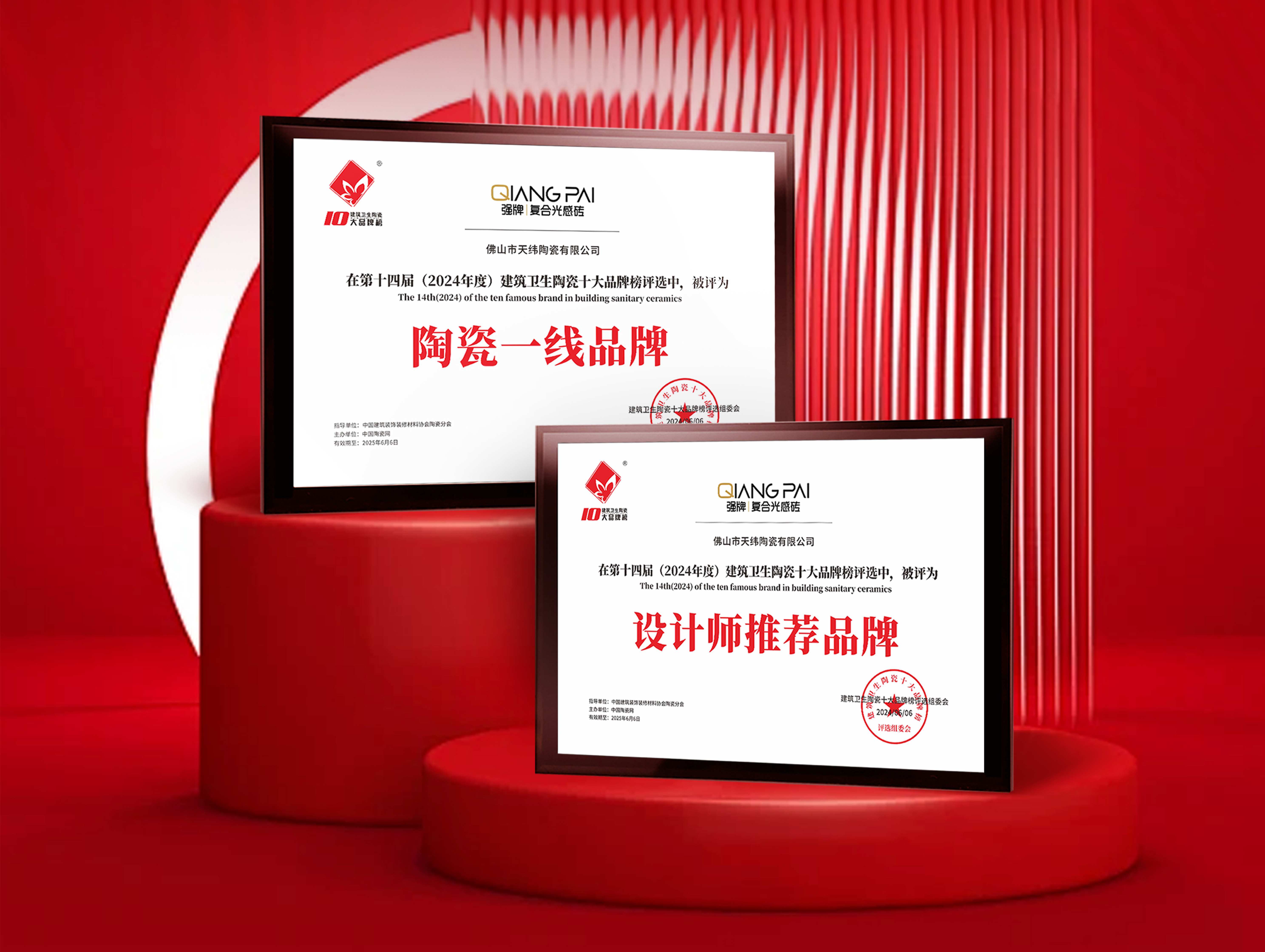 品牌榮譽 | 強牌復合光感磚榮獲“陶瓷一線品牌” “設計師推薦品牌”兩項大獎